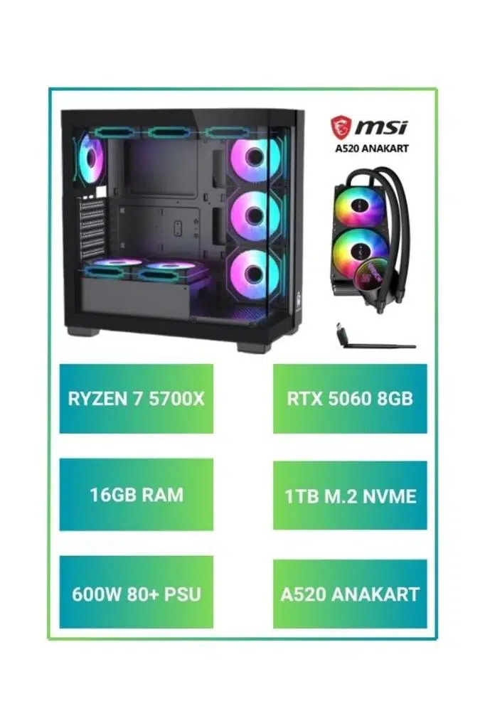 | Etiketler | RMT2509 Ryzen 7 5700x 16Gb Ram 1Tb M.2 Nvme RTX5060 Sıvı Soğutuculu Akvaryum Kasa HAZIR SİSTEM |
