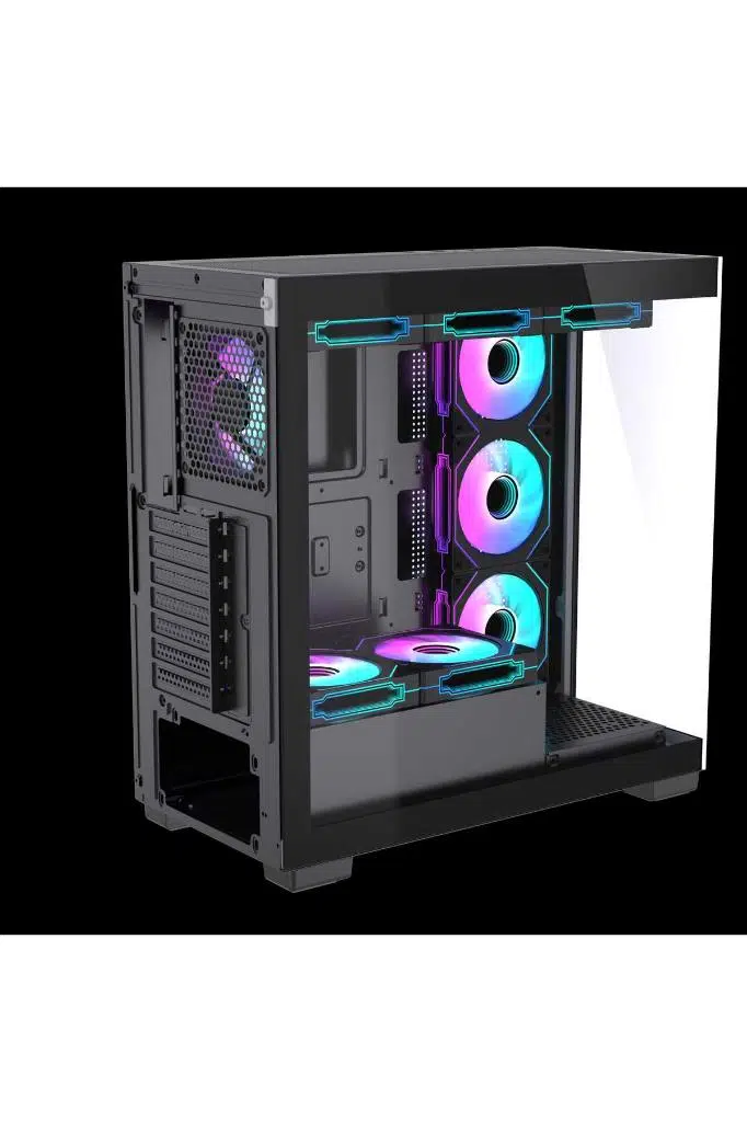 Kasa: Akvaryum tarzı, temper cam + RGB aydınlatmalı, 7 fanlı gösterişli tasarım