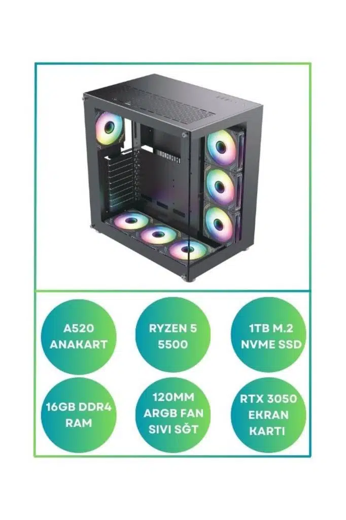 - Güçlü : AMD Ryzen 5 5500 işlemci ile 3.00 GHz üstü işlemci frekansı ve 6 çekirdekli yapı, yüksek hızda ve etkili çoklu görev yeteneği sunar.