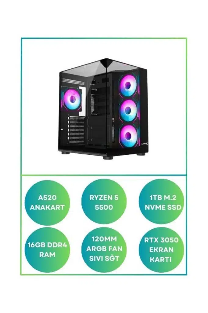 - Güçlü : AMD Ryzen 5 5500 işlemci ile 3.00 GHz üstü işlemci frekansı ve 6 çekirdekli yapı, yüksek hızda ve etkili çoklu görev yeteneği sunar.
